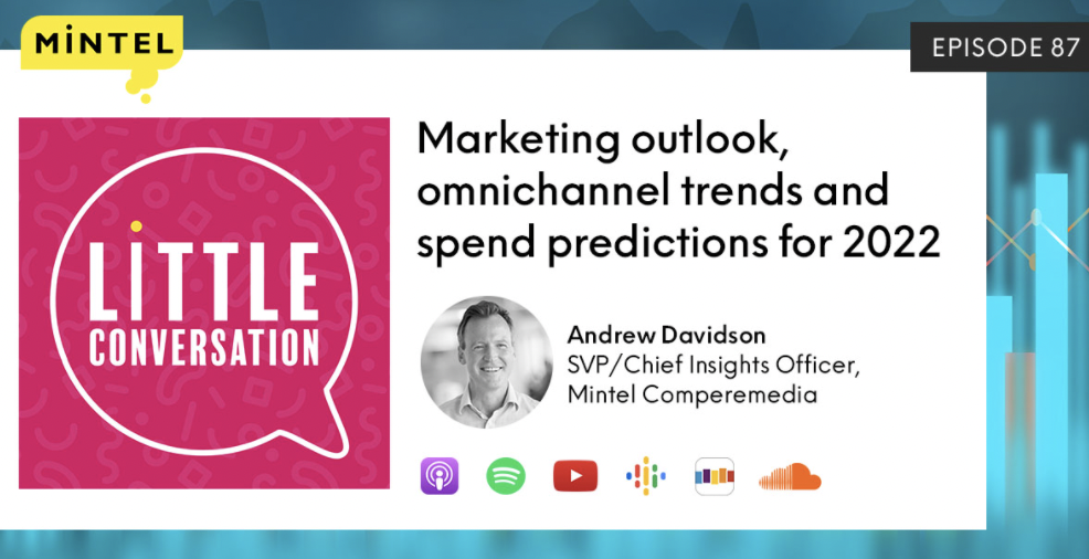 You can listen to this episode, Episode 87: Marketing Outlook, Omnichannel Trends and Spend Predictions for 2022, by Mintel Little Conversation Podcast on Apple, Spotify, YouTube, SoundCloud, Google Podcasts, and Stitcher.